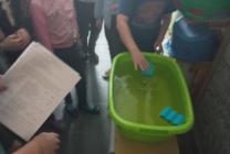 5 задание: игра "Кораблики" Дети встают по разные стороны сосуда с водой, у каждого на воде – губка... -